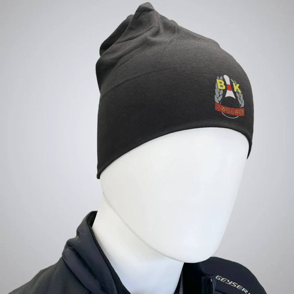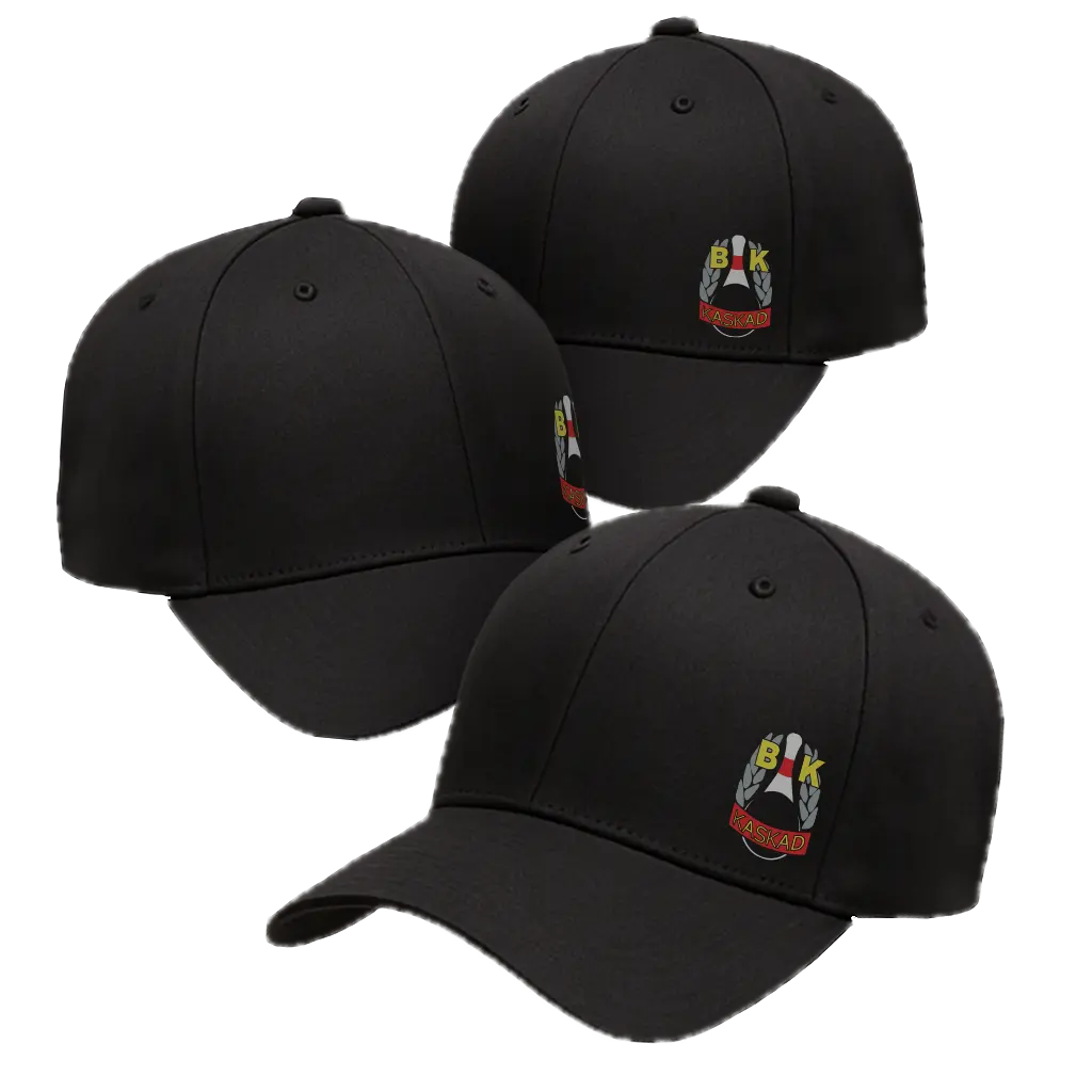 Svart mössa med BK Kaskads emblem. Tillverkad i bomull och elastan för perfekt passform – stilren, bekväm och elastisk design.