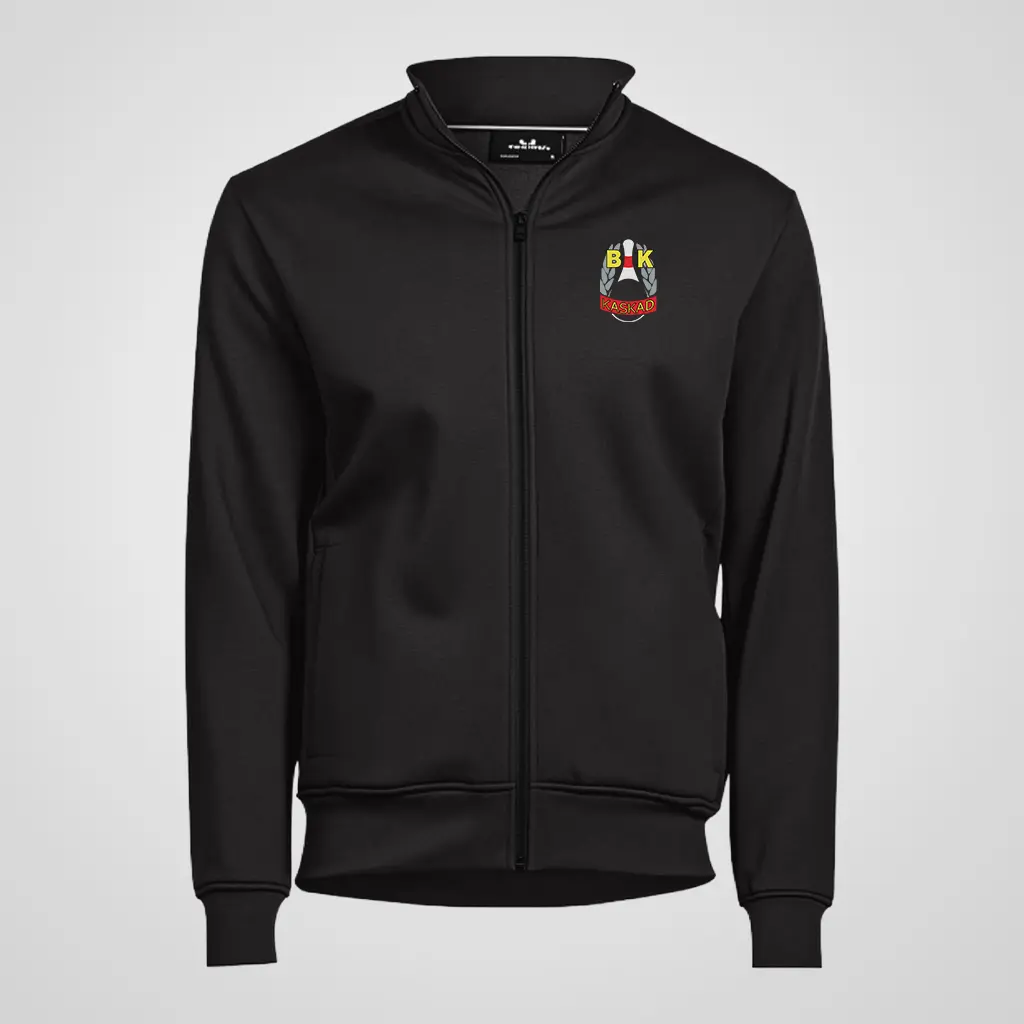 Unisex sweatshirt i mjukt material med hel dragkedja, ribbad krage och BK Kaskads emblem på bröstet.